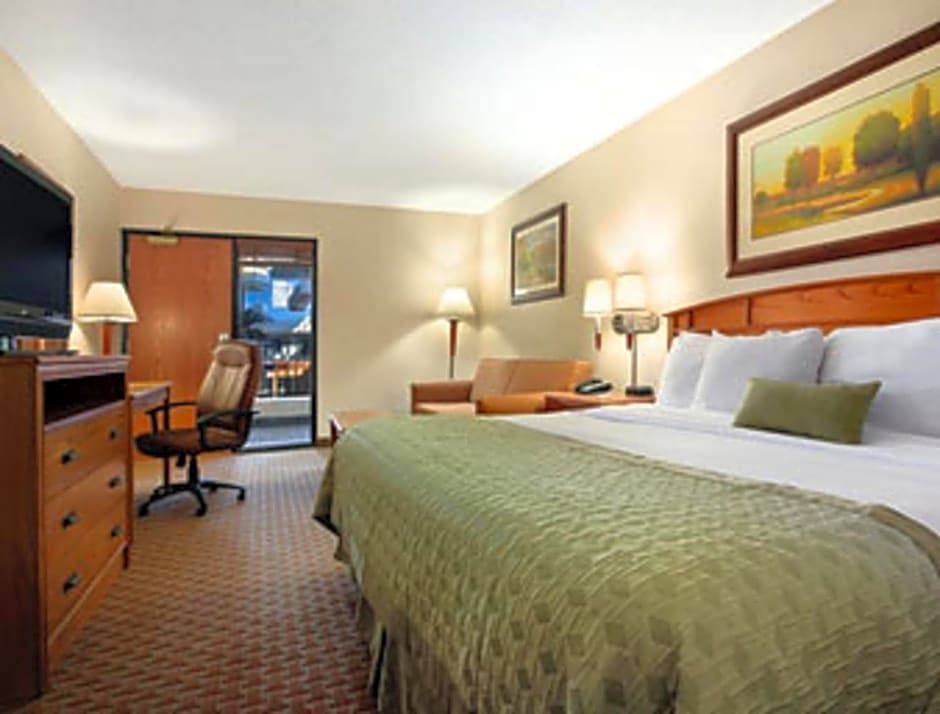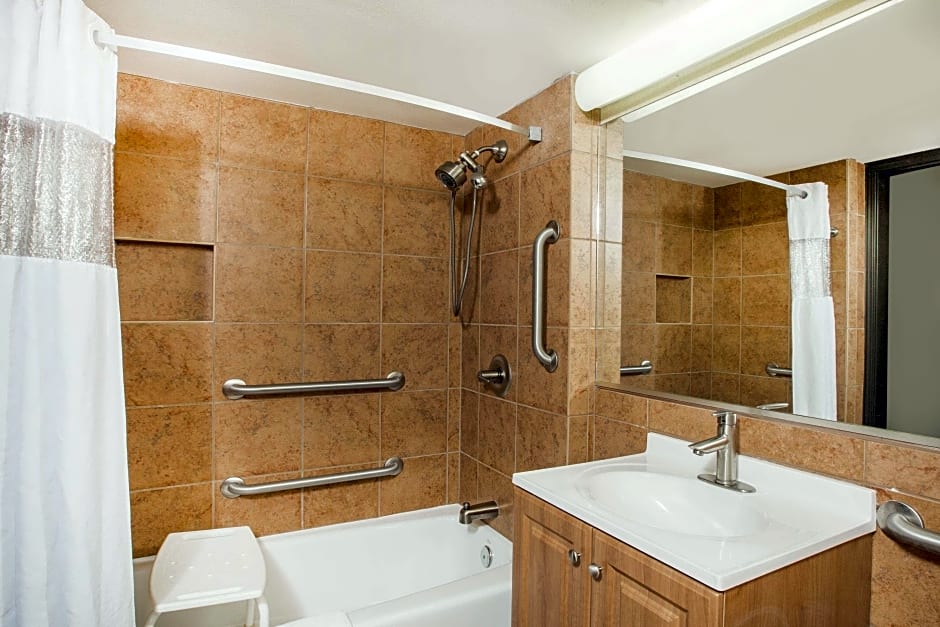 Accessible guest room with 1 queen bed and 1 sofa bed poolside. Our accessible room is wheelchair accessible, featuring bathroom rails and shower bars with room for up to 5 guests and includes mini-refrigerator, microwave and coffee/tea maker. Stream your favorite programs with free WiFi or watch a variety of shows on cable TV. Air conditioning, in-room safe, iron/ironing board, and hairdryer ensure comfort throughout your stay